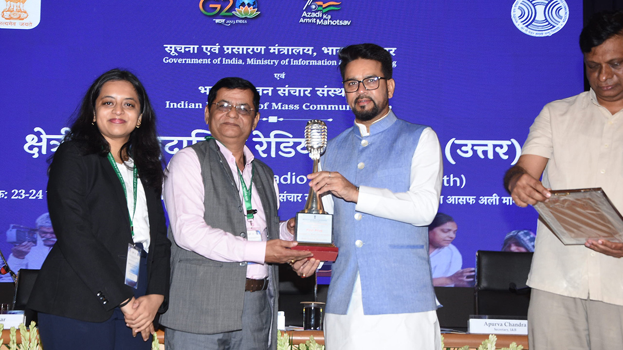 The National Community Radio Awards are given to those Community Radio Stations who have done exemplary work in the field of Community Radio Broadcasting through Community Centric Programmes. The various categories of awards have worked as a nudge for the Community Radios to develop programmes on various themes. The awards have promoted a culture of sustainability, innovation and citizen-participation. Therefore, Radio Vishwas received 2 National Awards in the thematic category (Education for All) and the most Sustainable Community Radio Station in the year 2021 under the sustainability award category. A ceremony was held at IIMC, New Delhi where Radio Vishwas was felicitated by Hon. Anurag Singh Thakur, Union Minister, Ministry of Information & Broadcasting, Government of India. He further added that the winners of National Community Radio Awards is a recognition of Community Radio Stations who have done commendable work in their field, in public interest. These awards were conferred during Community Radio Regional Sammelan being held on the occasion of National Broadcasting Day on 23rd July 2023.